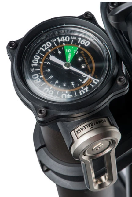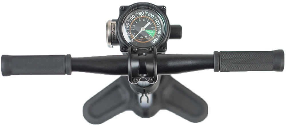 Pompe au sol de grand volume pour les pneus tubeless MTB avec réservoir de pression de 3,4 bars.