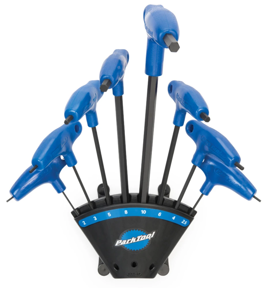 Un jeu complet de clés à douille hexagonales en forme de L, équipées des manches en P bien connus de Park Tools.