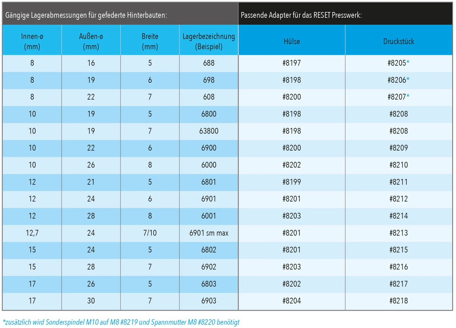 *une broche spéciale M10 à M8 #8219 et un écrou de serrage M8 #8220 sont en outre nécessaires !