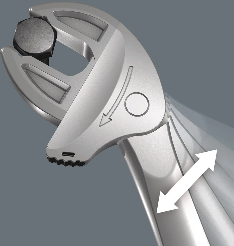 De nombreux utilisateurs souhaitent un outil de vissage universel avec un éventail d’applications le plus large possible. Un seul outil devrait suffire pour plusieurs dimensions métriques et impériales. Il faudrait qu’il s’adapte automatiquement aux différentes tailles de vis. Il faudrait qu’il agrippe fermement sans rien endommager et permette de travailler rapidement. Les mors parallèles réglables en continu remplacent plusieurs clés mixtes de dimension unique. La taille nécessaire se règle sans paliers automatiquement au contact des vis ou des écrous hexagonaux. Le mécanisme de levier intégré serre fermement la vis ou l’écrou entre les mors, ce qui réduit considérablement le risque de dérapage ou d’endommagement de la pièce. Grâce à la fonction cliquet, le vissage se fait rapidement, uniformément et sans désengagement de la clé. Les prismes permettent un angle de reprise de seulement 30°. La conception à une seule branche associée à la fonction cliquet et au prisme permet de travailler même dans les espaces réduits.