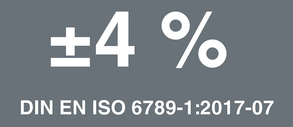 La précision est de ±4 % selon la DIN EN ISO 6789-1:2017-07.